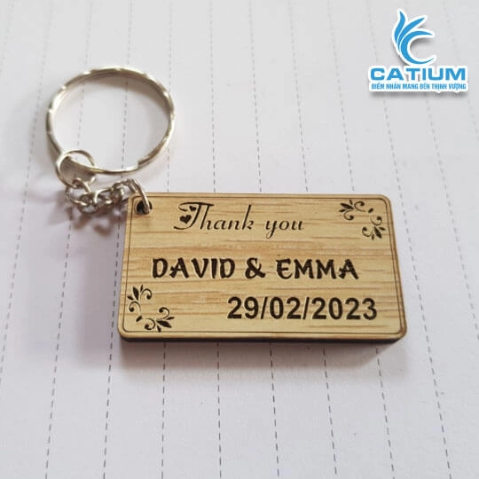 Làm móc khóa bằng gỗ lấy ngay tại CATIUM, thiết kế theo yêu cầu, khắc nội dung độc đáo trên cả hai mặt của móc khóa