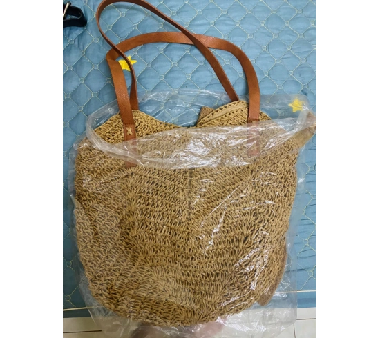 Hàng nhận như hình, túi dễ thương, chất liệu cói, không biết để lâu có mục ko nhưng tương đối rẻ.